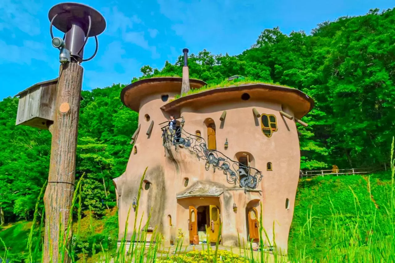 公園の総面積は約7.6ヘクタール(東京ドーム約1.6個分)と広大で、園内には4つの主要建物とカフェが設けられています。入口近くの「きのこの家」は、きのこが並んでいるようなユニークな外観が特徴で、3階建ての室内には迷路のような階段や小さな椅子、秘密基地のようなスペースがあり、木の温もりに包まれながら遊ぶことができます。建築には飯能特産の西川材がふんだんに使われ、自然との調和が随所に感じられます。