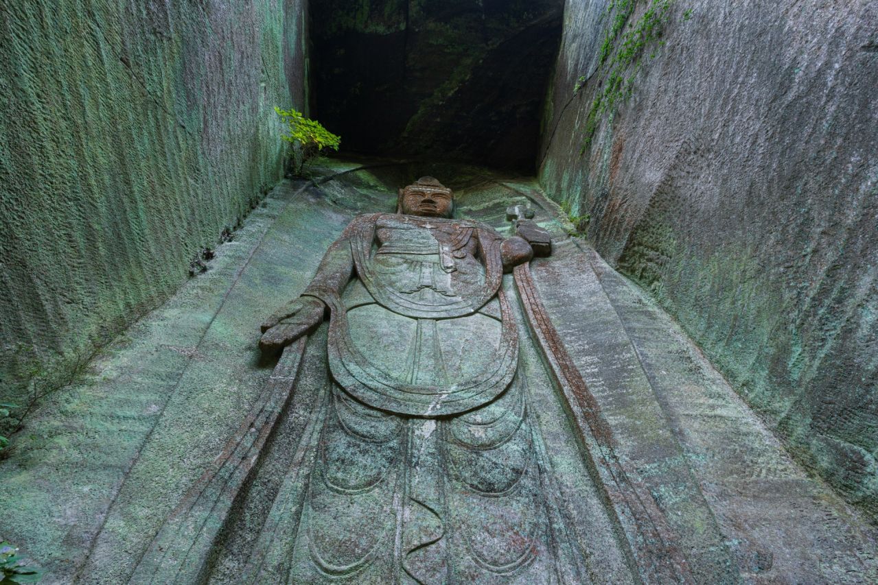 On the southern slope of the mountain lies Nihonji, the oldest imperial temple in the Kanto region, which was established by the monk Gyoki about 1,300 years ago. The temple grounds cover an area equivalent to about seven Tokyo Domes and are dotted with numerous attractions. The Great Buddha of Nirvana, standing at 31.05 meters, is known as Japan's largest carved rock Buddha and was sculpted over three years by Ono Jingohei and his disciples in 1783. Visitors are also greeted by an array of diverse statues including the 30.3-meter tall Hyakushaku Kannon, carved from an old quarry site, and the 1,553 Arhats created over 21 years in the late Edo period.